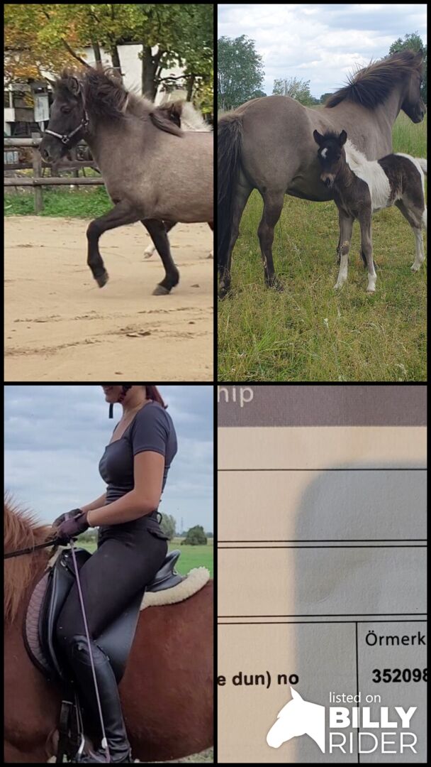 Very nice Icelandic mare with good pedigree and beautiful gaits from 2013 for a nominal fee as a companion - Fidla fra Hvammi 2. Very nice Icelandic mare with good pedigree and nice gaits from 2013 for a nominal fee. She is located in 14641... near Berlin. Due to my exhaustion depression and other sick horses (asthma and knee surgery), which I have to take care of, I would like to give away our dear Fidla as a side owner. She was diagnosed with pastern damage at the beginning of 2024. X-rays and ultrasound were taken in April 24. Fidla needs firmer ground and more attention. Walks on hard ground etc.. She gets bored of standing around, as she actually loves to move. She is lame-free at the walk and only ticks a little at the trot from time to time. She is a very sweet mouse, very cool at the vet etc.. I imported her in foal from Iceland in 2019, she has no eczema and no allergies. But she shouldn't be out in the pasture 24/7. She has given us 2 great foals. I would like a place where she can still do some ground work and lots of walks. Fidla doesn't want to just stand around either.