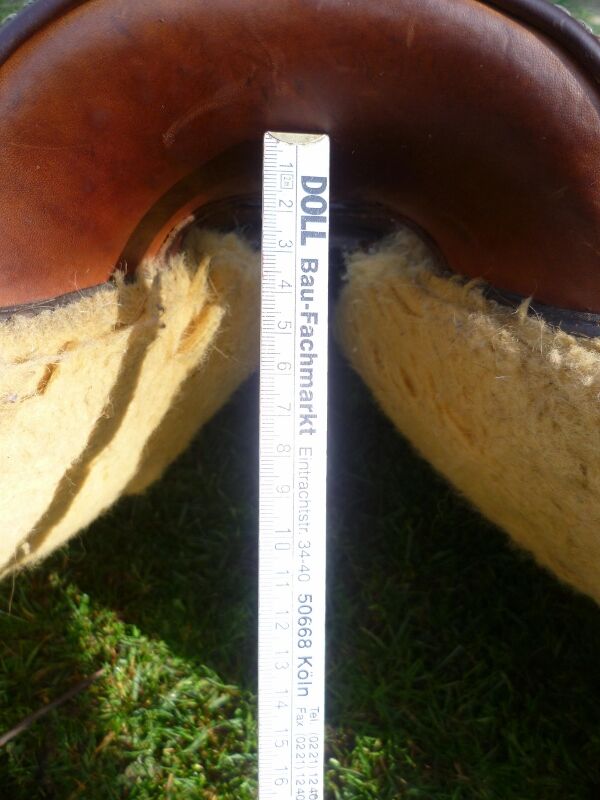 Model: Trail Basic Center of gravity Trail FQ approx. 22cm between the gullet Round Skirt 15.5" seat Gullet width approx. 22cm Tree length approx. 53cm Skirt length approx. 63cm Made in USA light incl. fender and stirrups approx. 11kg Estimated residual value according to Dan (saddlery Crates) 1500$ = 1752€