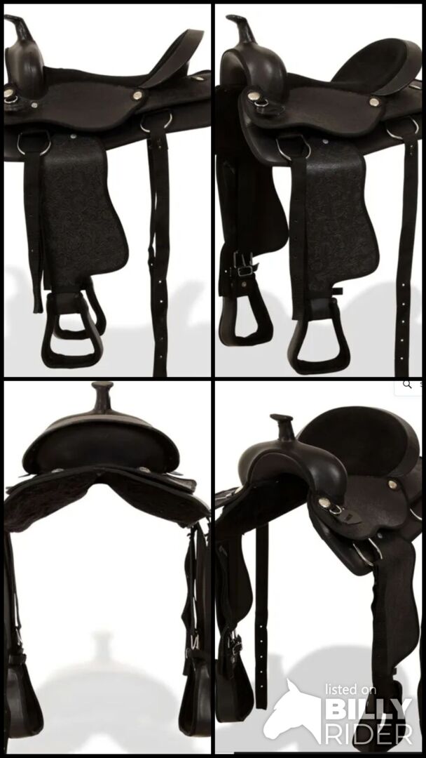 Western saddle new incl. headstall and breastplate - For sale is a western saddle incl. breastplate and headstall color black seat size: 15" (38,1 cm) Billet length: 32"-53" (81,3-134,6 cm) Girth length: 30" (76.2 cm) Gullet size: 7.5" (19.1 cm)