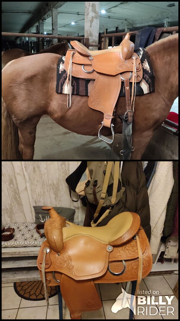 Western saddle x full - I am selling my saddle because my mare has lost so much weight that the saddle comes down too far at the front. Length 65cm 17 inch Concha width 24cm Length 65cm Weight approx. 12kg 17 inch Not yet set, because hardly used