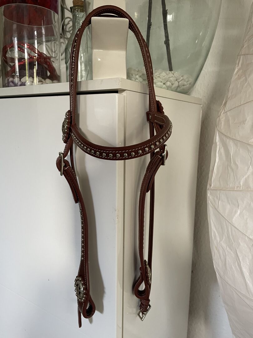 Western Snaffle with Reins New* - A "new" fantastically beautiful headstall with matching reins in a great finish and made of exquisite leather.