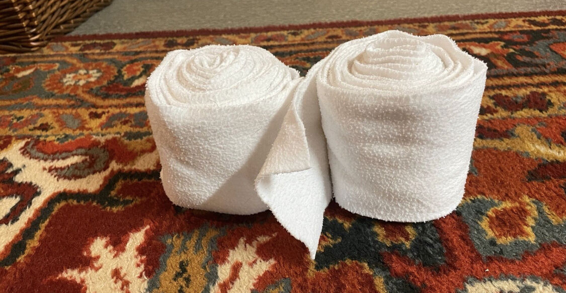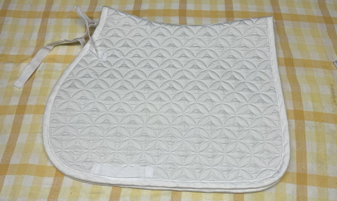 White jumping saddle pad in mint condition - Due to equestrian abandonment I sell my only once used white jumping saddle pad. I also sell my two white no name bandages in size WB.